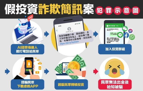 1、歹徒會利用FB、IG、YT、Google及簡訊等管道以股市名人、財經專家等人名義投放假投資廣告,或在交友軟體App假交友,宣稱保證獲利、穩賺不賠且利潤豐厚來吸引被害人。